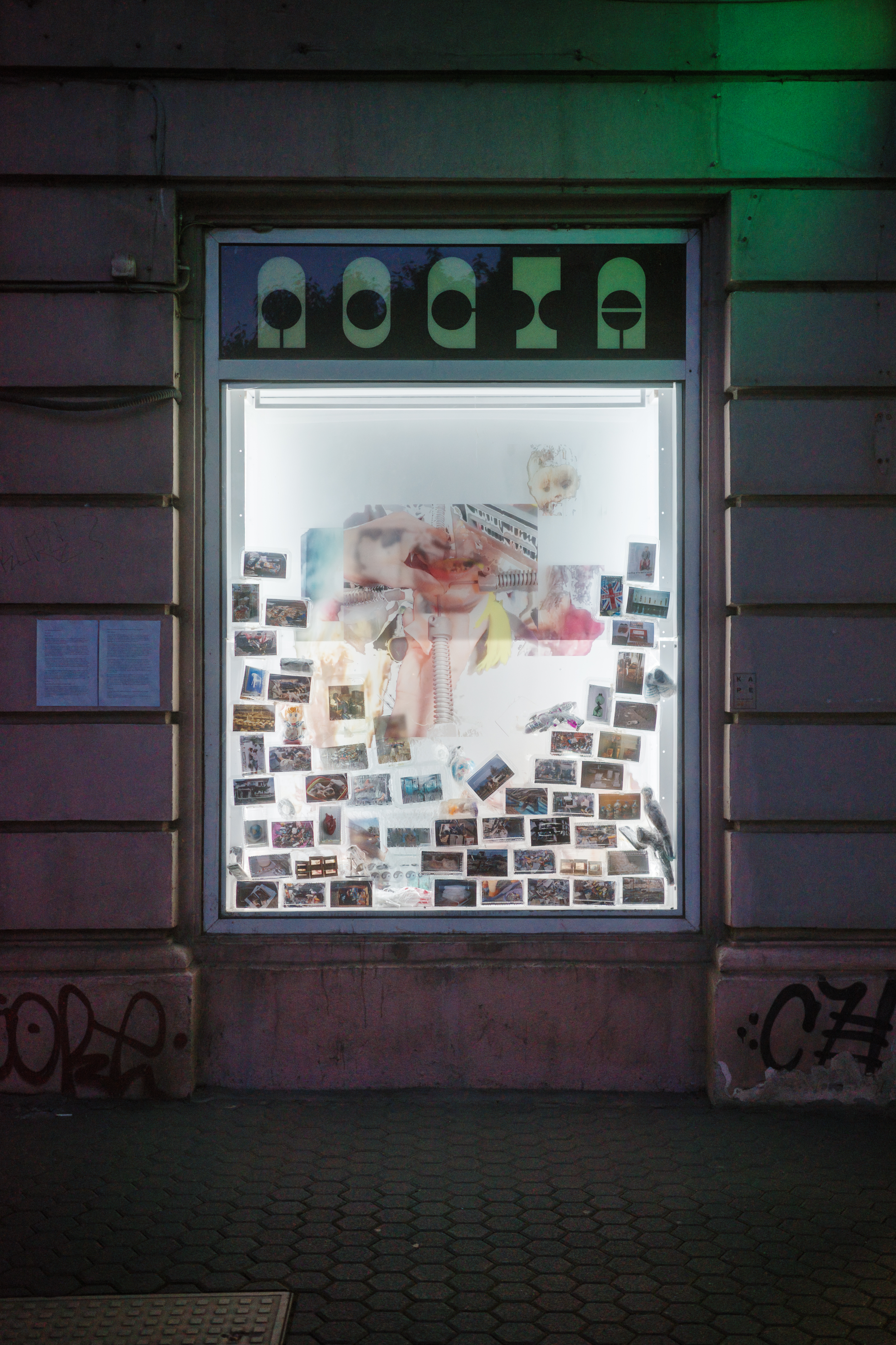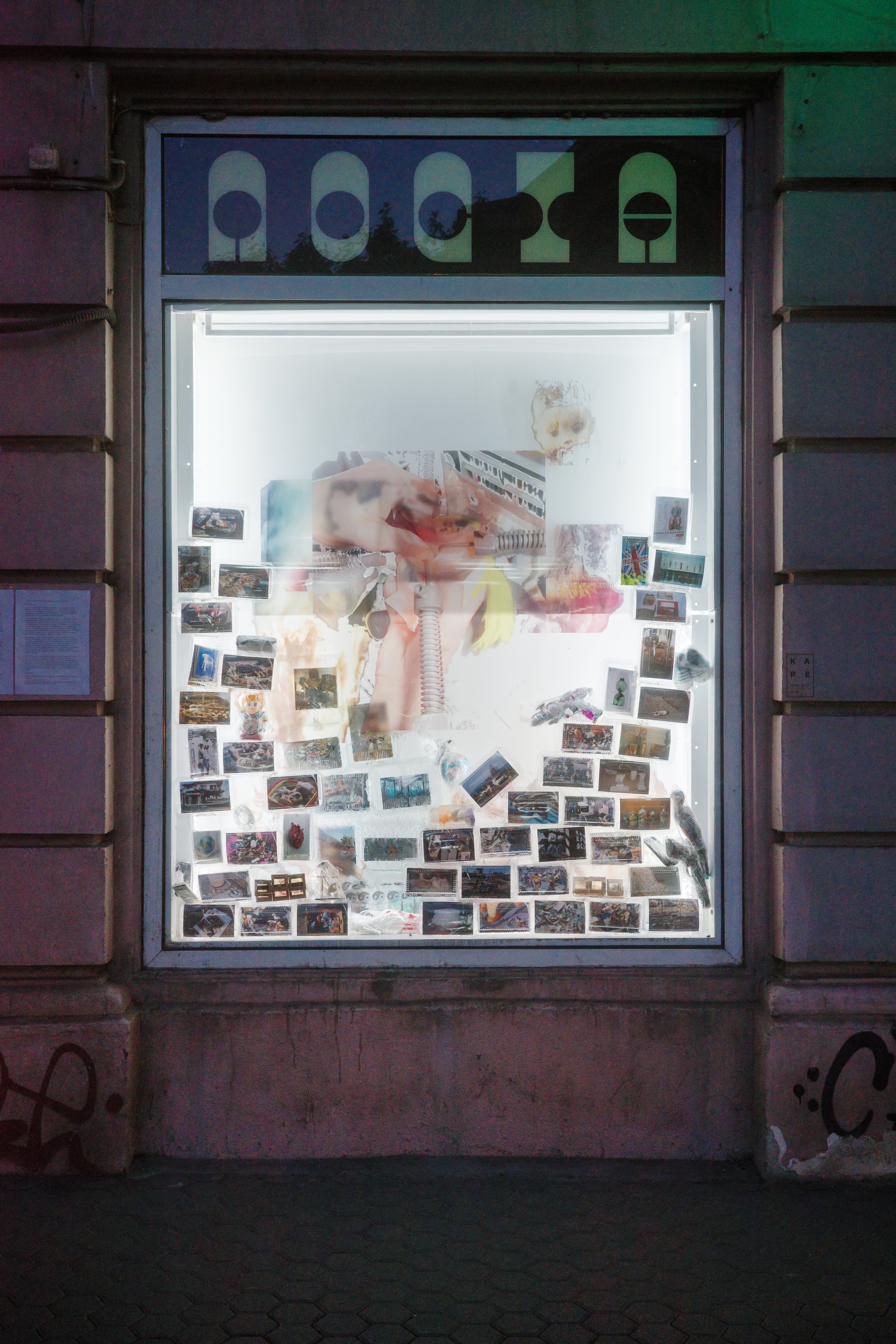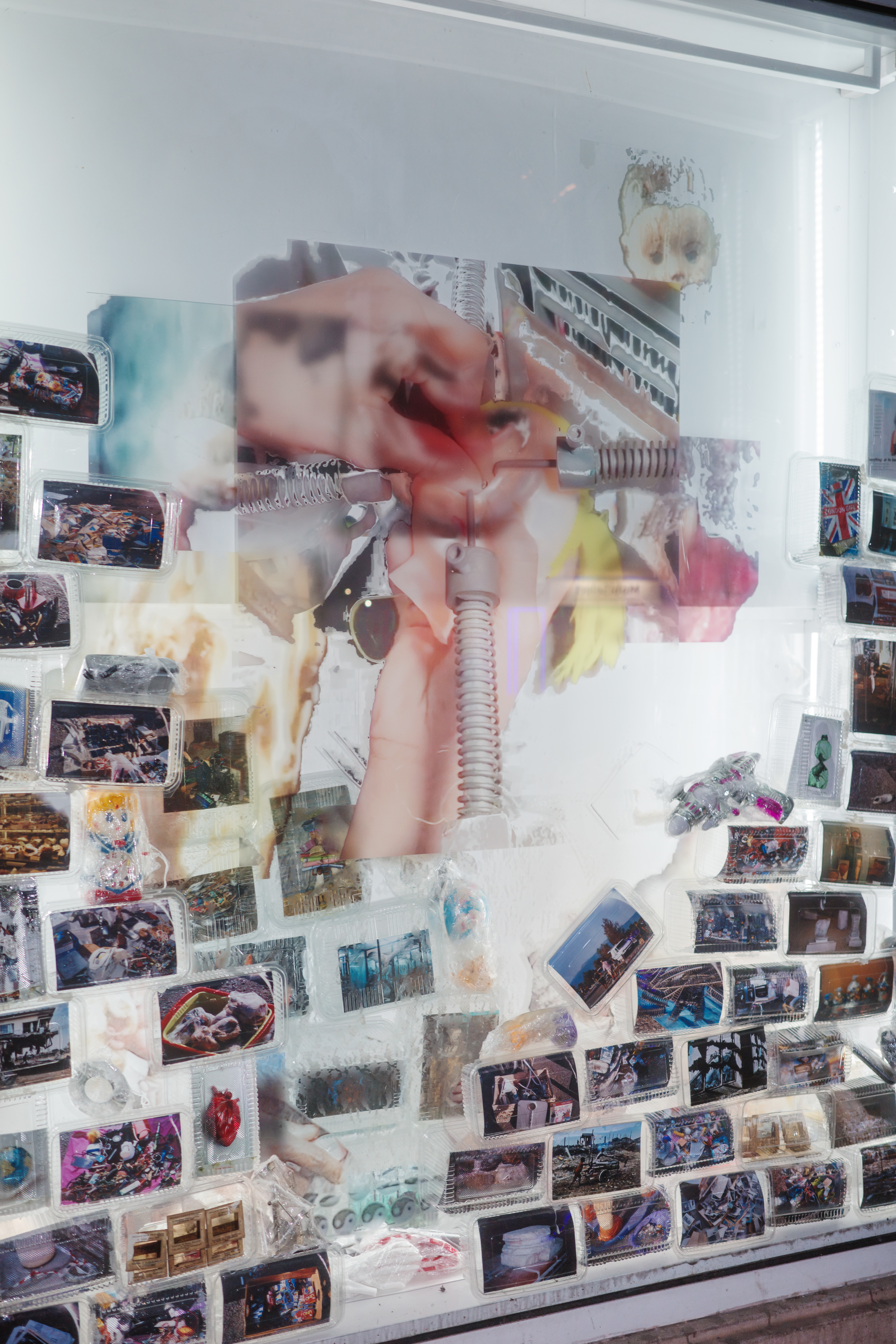 The installation overlays found objects mummified and wrapped in plastic, digitally eroded archival images, ephemeral iPhone snapshots and submerged 35mm film photos. Playing with transparency and opacity through additional lenses, narratives are created through parallel contexts. Repository of Future Ruins raises a paradox between preservation and decay, considering alternate methods of archiving, questioning visual aesthetics and methodologies for archival processes. The installation is about storing and (re)collecting memories, through hints and suggestions, imagery, sculpture and materiality.